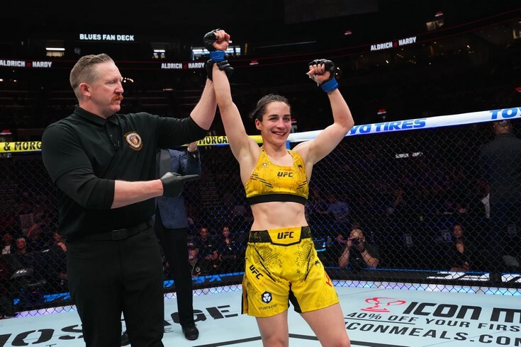 Здесь сложно поверить в победу Броган, которая уже долгое время не проводила бои. Я не думаю, что американка подойдет в оптимальной форме к этому противостоянию. Харди сейчас чаще выходит в клетку, что позволяет ей находится в тонусе. Учитывая это, я считаю, что Вероника сможет сначала истощить, а затем без проблем одолеть уставшую оппонентку.
